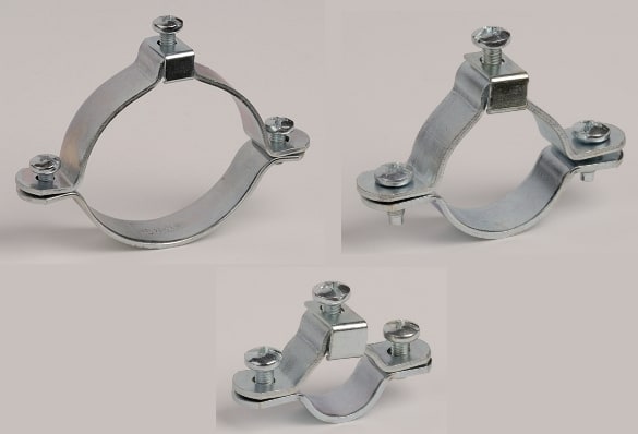Collare per messa a terra, per il fissaggio e la messa a terra di tubi in acciaio zincato o PVC. In acciaio stampato e zincato elettroliticamente. Elevata resistenza alla corrosione.