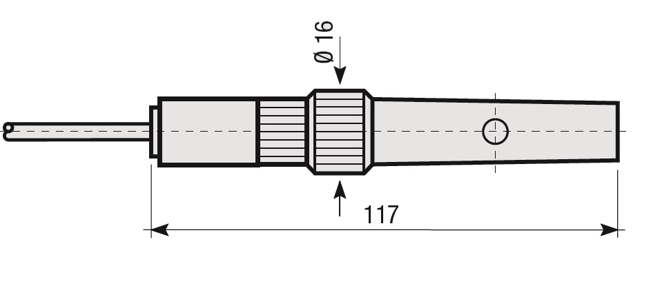 Serie di elettrodi unipolari che trovano impiego nel controllo del livello di liquidi elettricamente conduttori in accoppiamento con il relè di controllo livello liquidi. Completo di porta elettrodo in nylon per la protezione contro i contatti accidentali. Viene usato in serbatoi, metallici e non, ed in pozzi anche di piccolo diametro versione completa di zavorra. Peso: 0,080 kg.
