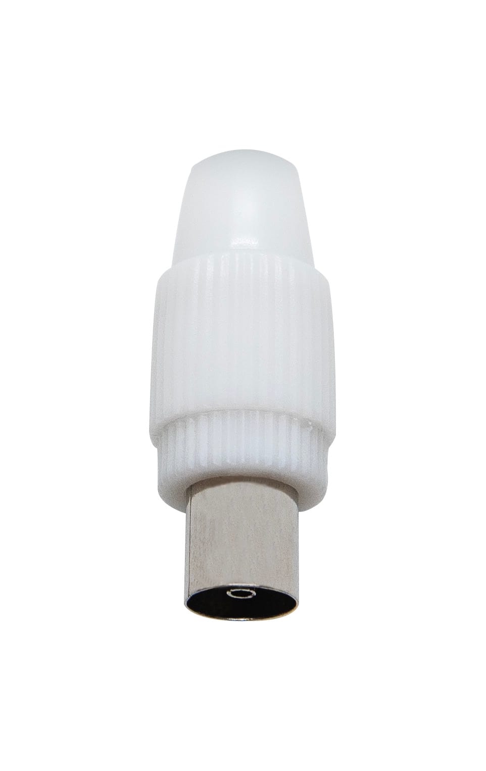 Connettore coassiale femmina IEC 60169-2, uscita cavo assiale - Z 75 Ω, bianco