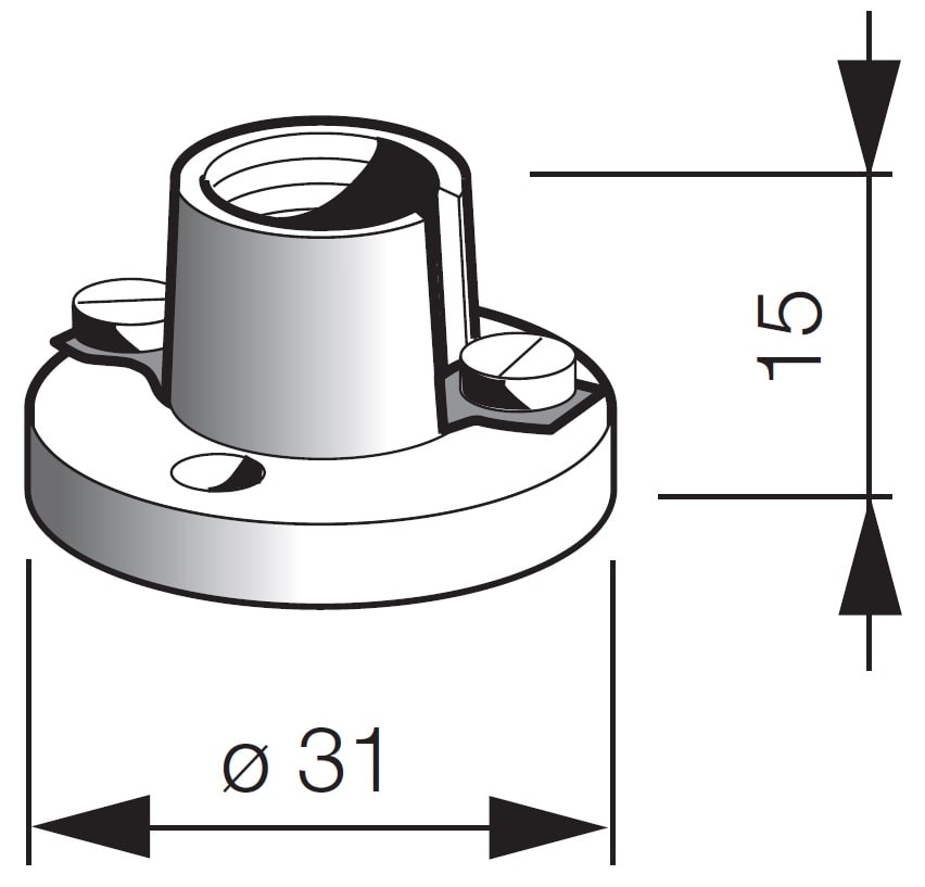 Portalampade E10, base porcellana, bianco. Fori di fissaggio ø 3,5 mm interasse 22 mm, base ø 32 mm