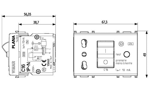 Bpresa SICURY 2P+T 16 A standard italiano tipo P17/11, interbloccata con interruttore automatico magnetotermico differenziale 1P+N C 16, 230 V~ 50 Hz, I¿n 10 mA, p.i. 3000 A, Silver - 3 moduli
