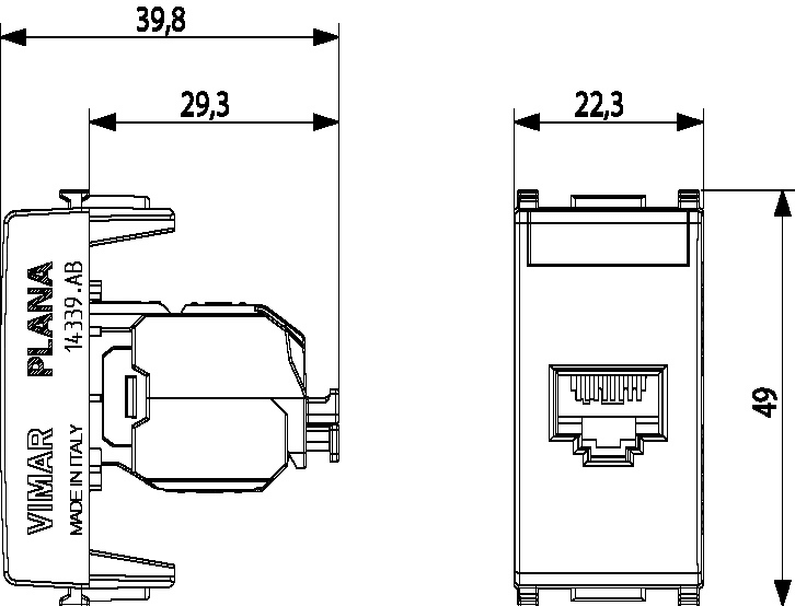 VIMAR S.P.A. - VIW14339.AB.13 PRESA RJ45 NETSAFE CAT6UTP ANTIBATTERICO - 14339.AB.13