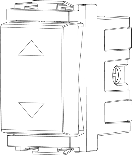 Pulsante commutatore 2P 10 A (6 morsetti) con frecce direzionali e posizione OFF centrale.