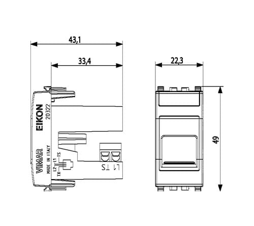 VIMAR S.P.A. - VIW20322 PRESA RJ11 6/4 CON PORTELLO GRIGIO - 20322