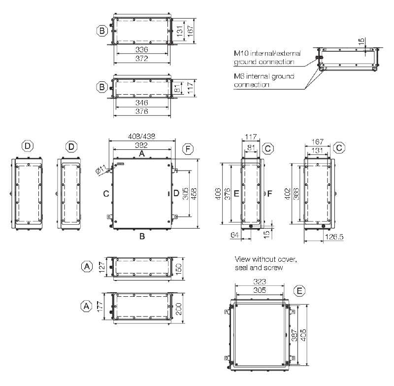 Custodia in metallo adatta all'uso in zone a rischio di esplosione. I fori per il montaggio sono posti all'esterno dell'area di tenuta stagna. Il montaggio a muro può essere realizzato utilizzando fori di montaggio o piedini di montaggio.