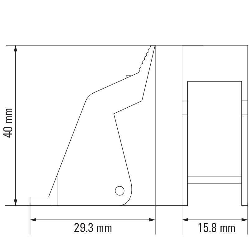 La leva di tenuta/sgancio fissa il relè a innesto nella base a innesto e ne facilita l'espulsione.