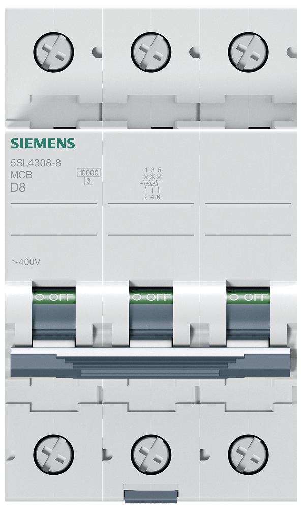 Interruttore magnetotermico 400V 10 kA, a 3 poli, D, 8A Interruttore magnetotermico SENTRON per la protezione da cortocircuito e sovraccarico sicura per applicazioni standard in edifici residenziali e funzionali. Montaggio e smontaggio dellapparecchio senza attrezzi. Semplice cablaggio dellalimentazione mediante la sbarra collettrice posteriore. Gli interruttori magnetotermici 5SL sono disponibili in esecuzione a 1, 2, 3, 4 poli nonché a 1 polo +N e a 3 poli +N nonché in ulteriori tipi speciali. I numerosi accessori, come ad es. i blocchetti di contatti ausiliari, consentono una varietà di ampliamenti funzionali. Semplicemente sicuri con gli apparecchi di protezione di SENTRON.