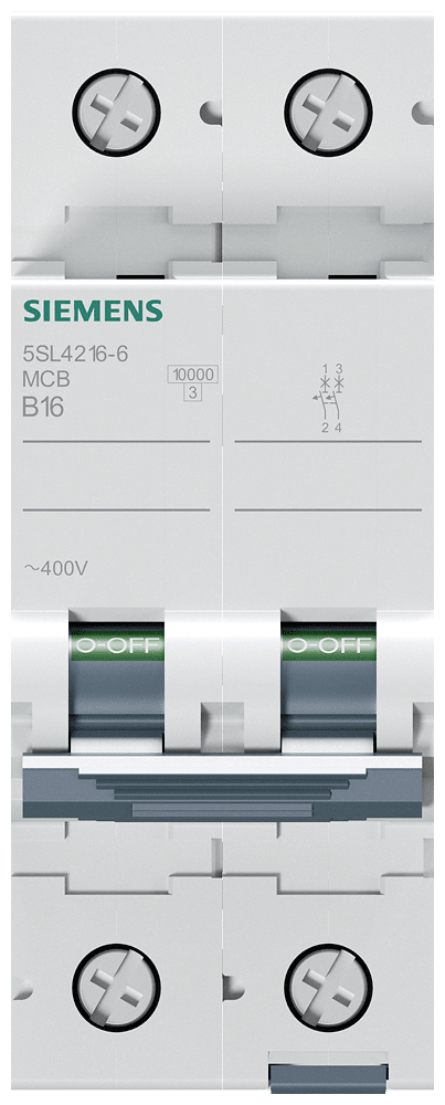 Interruttore magnetotermico 400V 10 kA, a 2 poli, B, 16A Interruttore magnetotermico SENTRON per la protezione da cortocircuito e sovraccarico sicura per applicazioni standard in edifici residenziali e funzionali. Montaggio e smontaggio dellapparecchio senza attrezzi. Semplice cablaggio dellalimentazione mediante la sbarra collettrice posteriore. Gli interruttori magnetotermici 5SL sono disponibili in esecuzione a 1, 2, 3, 4 poli nonché a 1 polo +N e a 3 poli +N nonché in ulteriori tipi speciali. I numerosi accessori, come ad es. i blocchetti di contatti ausiliari, consentono una varietà di ampliamenti funzionali. Semplicemente sicuri con gli apparecchi di protezione di SENTRON.