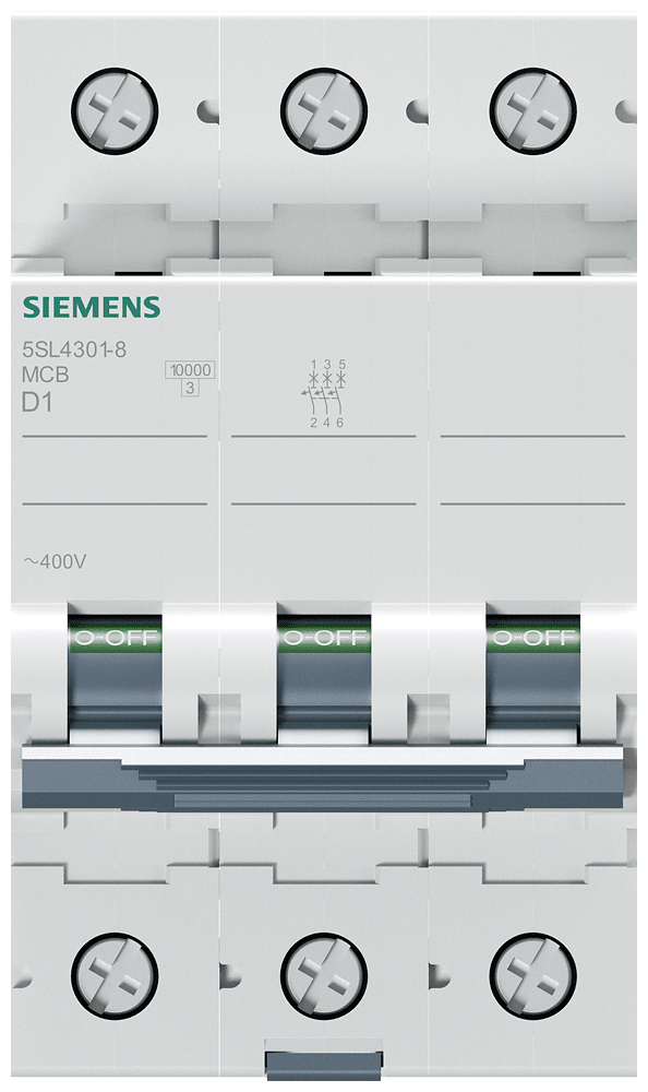 Interruttore magnetotermico 400V 10 kA, a 3 poli, D, 1A Interruttore magnetotermico SENTRON per la protezione da cortocircuito e sovraccarico sicura per applicazioni standard in edifici residenziali e funzionali. Montaggio e smontaggio dellapparecchio senza attrezzi. Semplice cablaggio dellalimentazione mediante la sbarra collettrice posteriore. Gli interruttori magnetotermici 5SL sono disponibili in esecuzione a 1, 2, 3, 4 poli nonché a 1 polo +N e a 3 poli +N nonché in ulteriori tipi speciali. I numerosi accessori, come ad es. i blocchetti di contatti ausiliari, consentono una varietà di ampliamenti funzionali. Semplicemente sicuri con gli apparecchi di protezione di SENTRON.