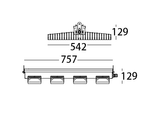 Apparecchio industriale ad alto flusso luminoso ed elevata efficienza luminosa progettatocon le più innovative tecnologie per ambienti con temperatura fino a 55°C.Flusso luminoso dell'apparecchio 31885 lm.Distribuzione diretta simmetrica ampia: la superficie illuminata ha forma rettangolare.Dissipatori modulari passivi monoblocco in pressofusione di alluminio,sovradimensionati per una ottimale gestione termica del modulo LED, con alette diraffreddamento autopulenti per effetto camino.Corpo portacablaggio in alluminio e acciaio di colore bianco ancorato solidamente aidissipatori e termicamente separato.Lenti 3F Lens fotoincise in metacrilato, ad alta efficienza luminosa per distribuzioneampia, fissate ai moduli LED.Apparecchio a temperatura superficiale limitata.Dimensioni: 757x542 mm, altezza 129 mm. Peso 16,7 kg.Grado di protezione IP65.Resistenza meccanica agli urti IK06 (1 joule).Resistenza al filo incandescente 650°C.Cablaggio elettronico 230V50/60Hz, fattore di potenza >0,95, corrente costante in uscita,classe I.Potenza dell'apparecchio 226 W.Alimentatore 230 Vac/Vdc conforme EN 60598222. In DC la potenza e il flusso di defaultsono pari al 100%, in AC restano al 100%.Temperatura ambiente da 30°C fino a +55°C.Connessione rapida.Unità elettrica posizionata in vano separato dal modulo LED per garantire le temperatureottimali dei componenti di cablaggio, ispezionabile e manutenibile. Umidità relativa UR: <85%. 4 moduli LED lineari MidPower da 50W/840.Codice fotometrico 840/339.Indice di resa cromatica CRI >80.Temperatura di colore nominale CCT 4000 K. Tolleranza iniziale del colore (MacAdam): SDCM 3