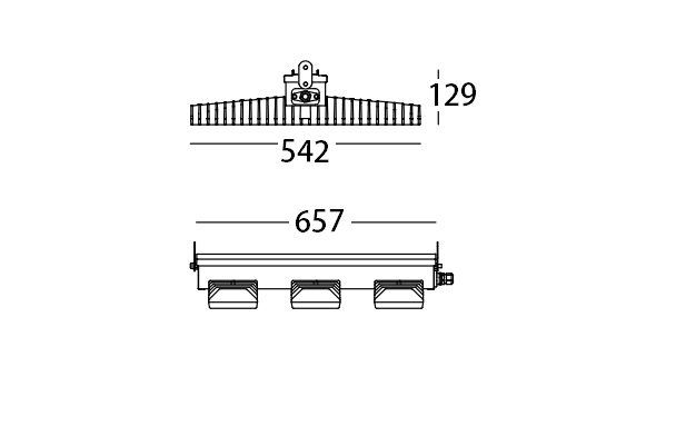 Apparecchio industriale ad alto flusso luminoso ed elevata efficienza luminosa progettatocon le più innovative tecnologie per ambienti con temperatura fino a 55°C.Flusso luminoso dell'apparecchio 24479 lm.Distribuzione diretta simmetrica ampia: la superficie illuminata ha forma rettangolare.Dissipatori modulari passivi monoblocco in pressofusione di alluminio,sovradimensionati per una ottimale gestione termica del modulo LED, con alette diraffreddamento autopulenti per effetto camino.Corpo portacablaggio in alluminio e acciaio di colore bianco ancorato solidamente aidissipatori e termicamente separato.Lenti 3F Lens fotoincise in metacrilato, ad alta efficienza luminosa per distribuzioneampia, fissate ai moduli LED.Apparecchio a temperatura superficiale limitata.Dimensioni: 657x542 mm, altezza 129 mm. Peso 13,9 kg.Grado di protezione IP65.Resistenza meccanica agli urti IK06 (1 joule).Resistenza al filo incandescente 650°C.Cablaggio elettronico 230V50/60Hz, fattore di potenza >0,95, corrente costante in uscita,classe I.Potenza dell'apparecchio 226 W.Alimentatore 230 Vac/Vdc conforme EN 60598222. In DC la potenza e il flusso di defaultsono pari al 100%, in AC restano al 100%.Temperatura ambiente da 30°C fino a +55°C.Connessione rapida.Unità elettrica posizionata in vano separato dal modulo LED per garantire le temperatureottimali dei componenti di cablaggio, ispezionabile e manutenibile. Umidità relativa UR: <85%. 3 moduli LED lineari MidPower da 50W/840.Codice fotometrico 840/339.Indice di resa cromatica CRI >80.Temperatura di colore nominale CCT 4000 K. Tolleranza iniziale del colore (MacAdam): SDCM 3