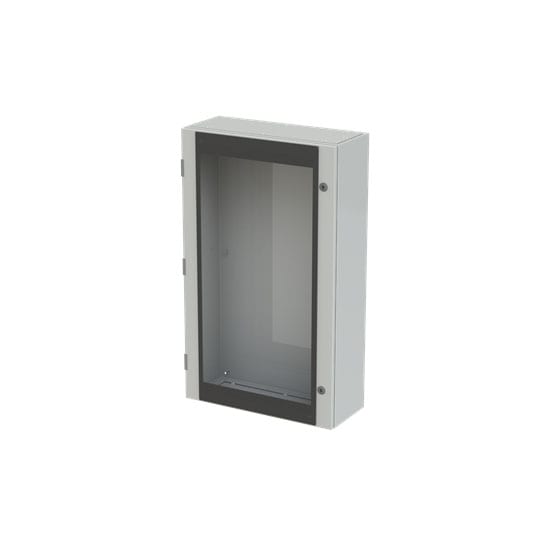 Cassa con porta in vetro senza piastra di fondo serie SR2, struttura in lamiera d'acciaio spessore 12/10. Utilizzata per la realizzazione di quadri di comando e controllo delle più varie macchine industriali: da grossi macchinari a linee automatizzate diproduzione o parti di esse, alle tipiche installazioni di quadri bordo macchina, a caldaie, impianti di riscaldamento ed altro ancora. Consente anche la realizzazione di quadri di distribuzione secondaria grazie alla possibilità di installare tutta la gamma di apparecchi e interruttori modulari su guide DIN abbinate ad appositi pannelli frontali modulari preforati e incernierati.