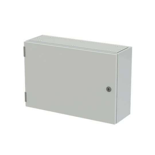 Cassa con porta cieca e piastra di fondo serie SR2, struttura in lamiera d'acciaio spessore 12/10, piastra di fondo in lamiera zincata spessore 20/10. Utilizzata per la realizzazione di quadri di comando e controllo delle più varie macchine industriali: da grossi macchinari a linee automatizzate di produzione o parti di esse, alle tipiche installazioni di quadri bordo macchina, a caldaie, impianti di riscaldamento ed altro ancora. Consente anche la realizzazione di quadri di distribuzione secondaria grazie alla possibilità di installare tutta la gamma di apparecchi e interruttori modulari su guide DIN abbinate ad appositi pannelli frontali modulari preforati e incernierati.