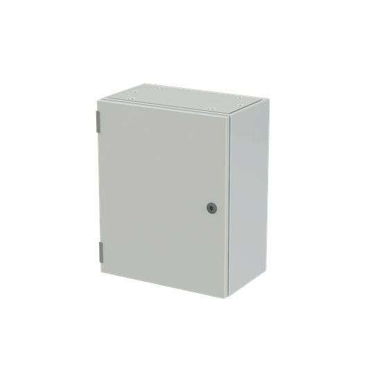 Cassa con porta cieca e piastra di fondo serie SR2, struttura in lamiera d'acciaio spessore 12/10, piastra di fondo in lamiera zincata spessore 20/10. Utilizzata per la realizzazione di quadri di comando e controllo delle più varie macchine industriali: da grossi macchinari a linee automatizzate di produzione o parti di esse, alle tipiche installazioni di quadri bordo macchina, a caldaie, impianti di riscaldamento ed altro ancora. Consente anche la realizzazione di quadri di distribuzione secondaria grazie alla possibilità di installare tutta la gamma di apparecchi e interruttori modulari su guide DIN abbinate ad appositi pannelli frontali modulari preforati e incernierati.