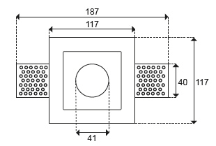 Una volta fissato nel controsoffitto è possibile procedere con la “rasatura” e la verniciatura. Si otterrà così un’installazione invisibile del faretto. Dimensioni (LxLxH): 117 x 117 x 54 mm
