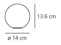 Dioscuri Tavolo 14 (E14). Materiali: Base in policarbonato con zavorra in acciaio; diffusore in vetro soffiato acidato. 4W.