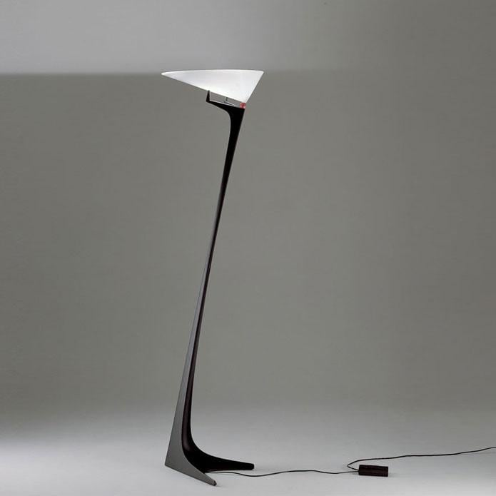 Struttura in resina poliuretana espansa verniciata; diffusore in metacrilato opalino bianco. Con regolatore d'intensità luminosa.