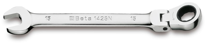 Serie di 9 chiavi combinate a cricchetto snodate (art. 142SN)con supporto compatto_x000D_8-10-11-12-13-14-15-17-19 mm