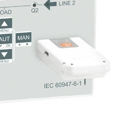 Connettore frontale USB per la programmazione/gestione ATS. Isolamento galvanico per connessioni sicure garantito tramite comunicazione a infrarossi con porta frontale centrale.