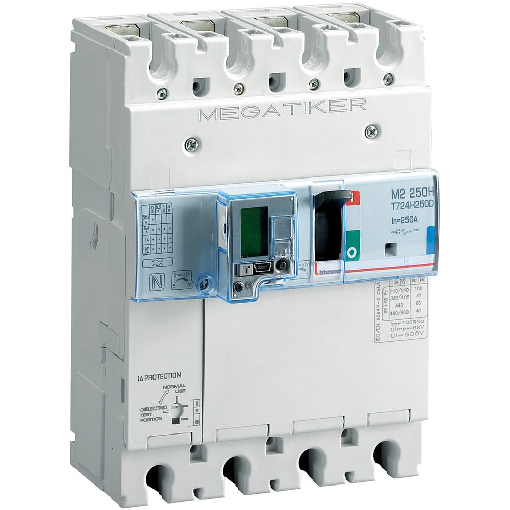 M2 250H - interruttore scatolato MEGATIKER magnetotermico con protezione differenziale integrata 3P+N/2 - Icu= 70kA - In= 250A