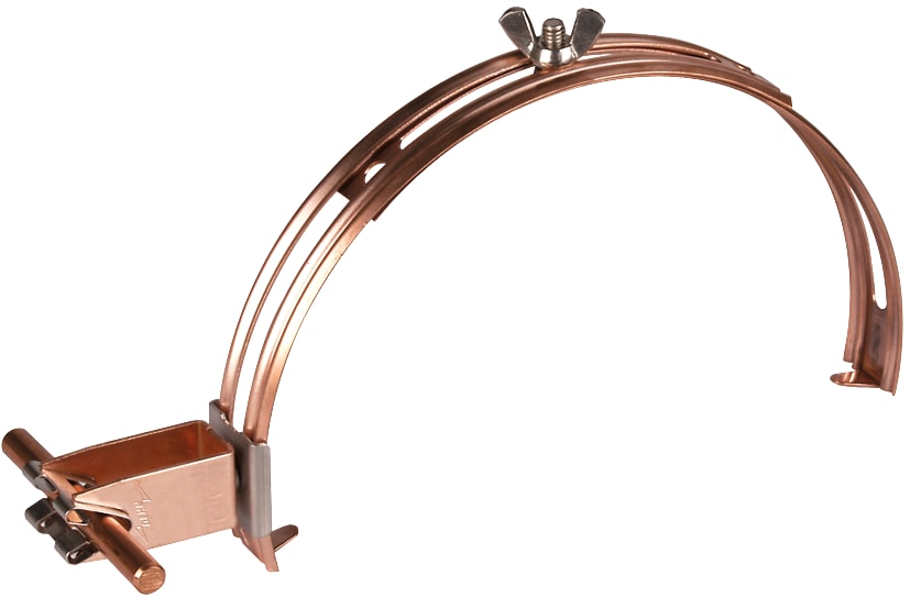 Staffa portafilo per tetti a regolazione continua con staffa portafilo DEHNgrip, per il fissaggio di captatori sul coppo ad es. di tetti in tegole. Con posa libera del conduttore, con regolazione laterale (al centro dall’alto in basso).