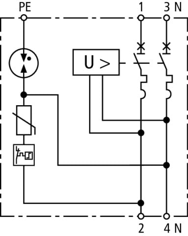 Unità completa precablata, non è necessario nessun cablaggio supplementare dei singoli dispositivi. Soddisfa i requisiti della CEI EN 50550 (CEI 23-118) "dispositivi di protezione contro le tensioni frequenti di rete". Elevata sicurezza dei dispositivi per mezzo del controllo del dispositivo "Thermo-Dynamik-Control". Per la protezione di impianti elettrici utilizzatori in bassa tensione da tensioni transitorie e temporanee (SPD+POP). Per l'impiego nel concetto di protezione da fulminazione a zone sulle interfacce 0B-1 e superiori.