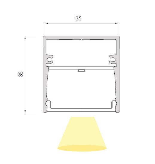 Zer035 costruito in estruso di alluminio per diffondere la luce per mezzo di LED al top, per qualità, resa cromatica,lumen emessi, ed accurata selezione della Temperatura colore, scelta in base al progetto scenografico che vogliamo ottenere.ZERO 35 offre una gamma di finiture e di accessori, i tagli lineari e a 45 o su MISURA, rendono realizzabile qualsiasi progetto sia esso da incasso a parete, plafone o sospensione. L: 3m. Colore: bianco.