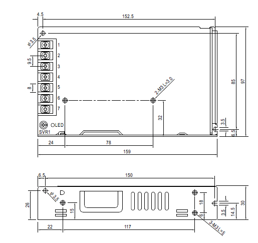 Alimentatore a commutazione a uscita singola AC/DC da 150 W. Tensione uscita 48V DC