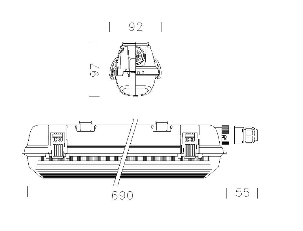 Dalla esperienza Disano nasce la prima armatura stagna a LED che beneficia della tecnologia, dell’industrializzazione e dell’affidabilità Disano, da sempre leader nella produzione di armature stagne. Le caratteristiche di base sono quelle che hanno garantito negli anni il successo delle armature stagne Disano. Il corpo lampada è in policarbonato infrangibile, con un grado di protezione IP66, particolarmente robusto grazie anche alla struttura rinforzata da nervature interne. L'installazione è facilitata dalla staffa in acciaio inox di serie per la collocazione a parete o a plafone, mentre il gancio a molla di serie consente l'aggancio rapido a qualsiasi sistema di sospensione a catena. Inoltre speciali denti-guida permettono un perfetto allineamento per le armature utilizzate in serie continua. A queste caratteristiche di base si aggiungono oggi i vantaggi della tecnologia LED, ovvero sorgenti luminose con una lunghissima durata di vita (50mila ore), consumi ridotti e un'alta qualità della luce. I LED bianchi garantiscono un'illuminazione sicuramente più gradevole e con una migliore resa dei colori rispetto alla luce gialla tipica delle sorgenti a vapori di sodio. CORPO: Stampato ad iniezione, in policarbonato grigio RAL7035, infrangibile , di elevata resistenza meccanica grazie alla struttura rinforzata da nervature interne. DIFFUSORE: Stampato ad iniezione in policarbonato trasparente prismatizzato internamente per un maggior controllo luminoso, autoestinguente V2, stabilizzato ai raggi UV. La finitura liscia esterna facilita l'operazione di pulizia, necessaria per avere sempre la massima efficienza luminosa. Lampada: LED 10W 1680lm-6500K-CRI 80.