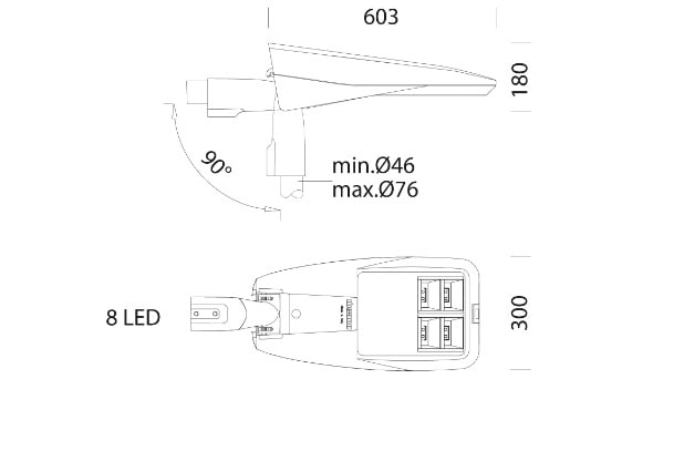 3292 Sella 1 - Asimmetrico 45°. Corpo e coperchio: stampati in alluminio pressofuso e disegnati con una sezione aerodinamica a bassa superficie di esposizione al vento. Alette di raffreddamento integrate nella copertura. Ottiche: in alluminio rivestito con argento ad altissima purezza 99.99%, con procedimento sotto vuoto (PVD). Attacco palo: In alluminio pressofuso idoneo per pali di diametro da min. 46mm a max. 76mm orientabile da 0° a 20° per applicazione a frusta; e da 0° a 20° per applicazione a testa palo. Passo di inclinazione 5°. Diffusore: vetro extra-chiaro sp. 4mm temprato resistente agli shock termici e agli urti (UNI-EN12150-1: 2001). Verniciatura: a polvere con resina a base poliestere, resistente alla corrosione e alle nebbie saline e stabilizzata ai raggi UV. Si dichiara l’apparecchio di illuminazione SELLA resistente a 2000 ore di esposizione alla nebbia salina in accordo alla norma ASTM B 117 e a 2000 ore all’esposizione di UV CON in accordo alla norma ASTM G 154 . Dotazione: Connettore esterno per una rapida installazione. sezionatore in doppio isolamento che interrompe l’alimentazione elettrica all’apertura della copertura. Dispositivo di protezione conforme alla EN 61547 contro i fenomeni impulsivi atto a proteggere il modulo LED e il relativo alimentatore.Connettore esterno per una rapida installazione. Opera in due modalità: modo differenziale: surge tra i conduttori di alimentazione, ovvero tra il conduttore di fase verso quello di neutro. modo comune: surge tra i conduttori dialimentazione, L/N, verso la terra o il corpo dell’apparecchio se quest’ultimo è in classe II e se installato su palo metallico. LED: Fattore di potenza: =0,92. Colore: Grafite. LED 63W - 8640lm - CRI 70 - 700mA - 4000K -30°+40° - surge protector 6/8kV.Apparecchio a LED con reattore elettronico + Lampada.