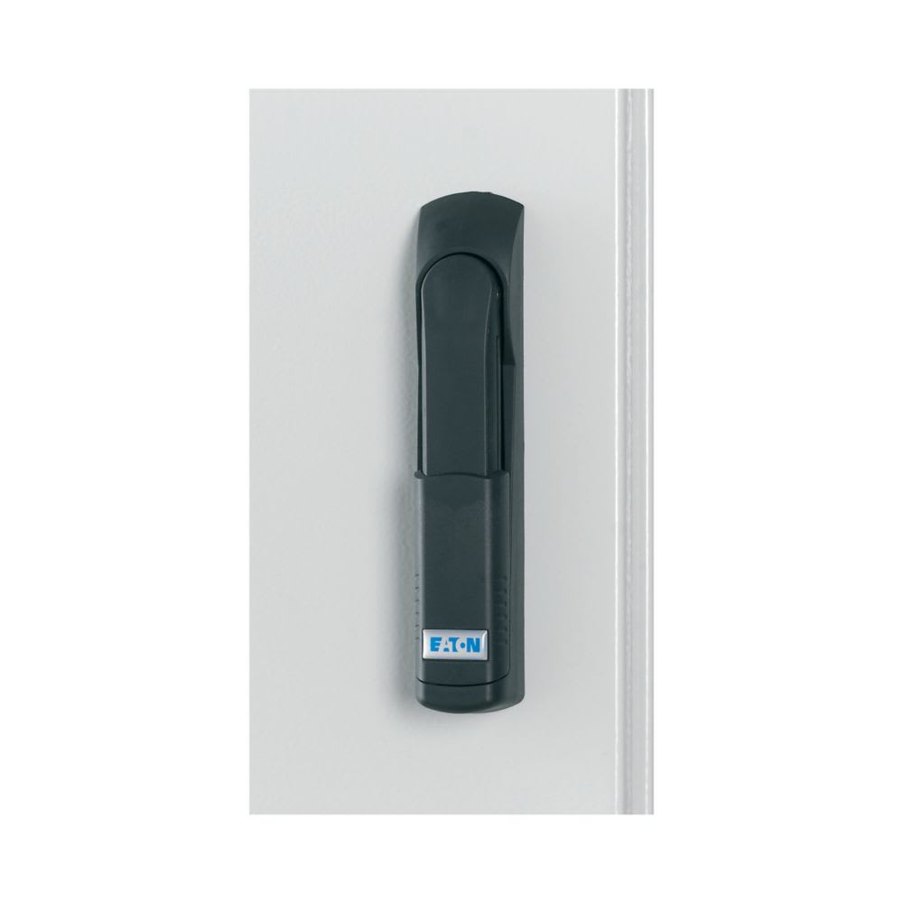 Meccanismo di chiusura: maniglia rotativa con selettore, il meccanismo di chiusura con chiave a doppia mappa da 3 mm viene fornito di serie con le porte, maniglia di bloccaggio in poliammide caricata a vetro nera con pulsante, materiale di fissaggio in acciaio zincato, con guarnizione