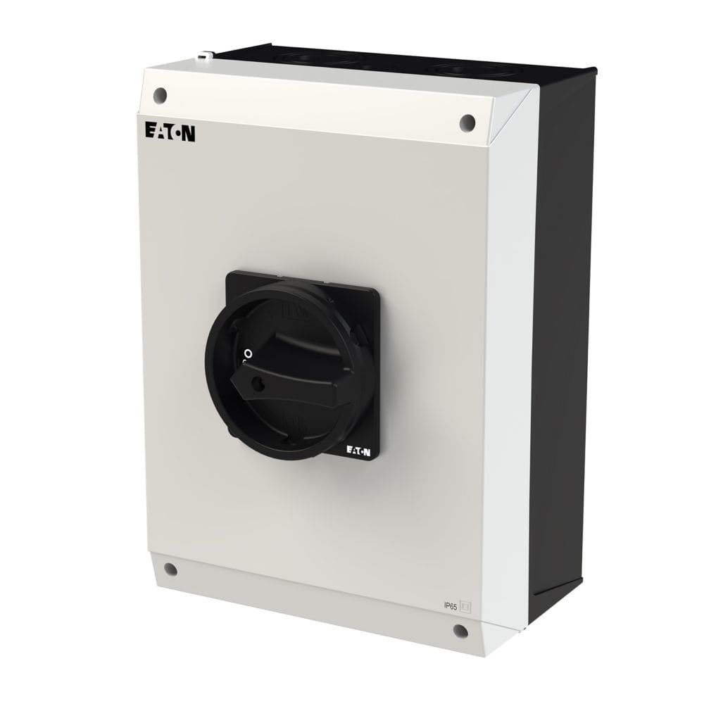 Interruttore generale, Gamma di prodotti: Interruttore principale, interruttore di manutenzione, Riferimento gruppo parti: P3, Funzione di arresto: Funzione di ARRESTO, con maniglia rotativa nera e corona di blocco, Informazioni sull'attrezzatura fornita: contatto ausiliario installato dall'utente., 3 poli + N, Impianto di blocco: Bloccabile in posizione 0 (Off), Grado di protezione: IP65, Design: montaggio a vista, Potenza nominale d'impiego AC-23A, 50 - 60 Hz 400 V: P = 55 kW, Corrente nominale ininterrotta: Iu = 100 A, Conformità alle norme: IEC/EN 60947, VDE 0660, IEC/EN 60204, CSA, UL, Sezionatori di potenza secondo IEC/EN 60947-3