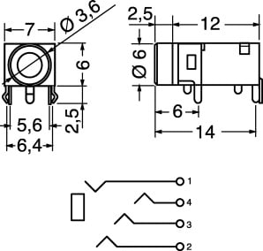 PRESA PROFESSIONALE 4 POLI Ø 3,5 mm. MONTAGGIO:c.s. CORPO:pvc. CONTATTI:ottone. PER SPINE VOL.:4/3015.