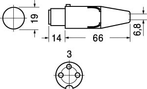 PRESA 3 POLI PER MICROFONO TIPO STANDARD. Con aggancio per il bloccaggio. Manicotto salvacavo in gomma. CORPO:ottone nichelato. ISOLAM.:resina fenolica. TEMP. LAV.:-30°C ÷ +71°C. ADATTATORE:4/4830. PER SPINE PANN.:4/4829. PER SPINE VOL.:4/4821. CAVO:6/1460.