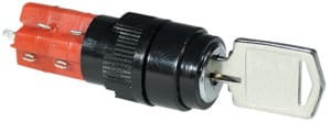 INTERRUTTORE A CHIAVE BIPOLARE 2 POSIZIONI. Fornito con 2 chiavi estraibili sia in chiusura che in apertura del contatto, unica combinazione.CORPO:term. res. alte temp. CONTATTI:argento. TERMINALI:a saldare. RESIST.ISOL.:>100 MOHM. RES. CONT.:< 50 mOHM. GRADO DI PROTEZ.:IP 40. TEMP.LAV.:-25°C ÷ +55°C. FORAT.PANN.:Ø 16 mm. SPESS.MAX PANN.:8 mm. PORTATA MAX.:5 A-250 VCA. ANGOLO ROTAZ.:90°.