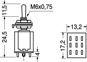 DEVIATORE MINIATURA 3 SCAMBI 2 POSIZIONI. PORT.:6A - 28 Vcc. CORPO:materiale fenolico. LEVA:ottone nichelato. TERMINALI:a saldare. MATER.:ottone argentato. CAPPUCCI:4/6560 - 4/6708.