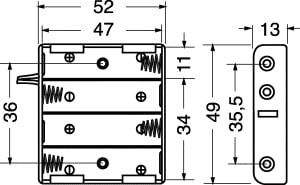 PORTAPILE PER 4 PILE MINISTILO (AAA-UM4). CORPO:polipropilene. CONNESSIONE:fili liberi. LUNG. FILI:150 mm. PER BATTER.NI-MH:30/284. PILE ALCALINE:30/24000 - 30/25000.