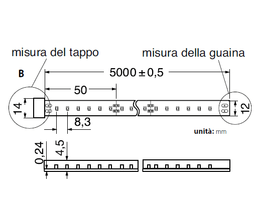 • Potenza della lampada per metro - 12 W