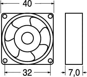 VENTILATORE ASSIALE SUPPORTO CUSCINETTI 40x40x7 mm. •ELICA: poliestere termopl. •TEMP. LAV.: -20°C÷+80°C •FATT. RUMORE: 26 dB •GIRI MIN./RPM: 6700 •CFM: 6,2 . Per computer, strumenti, ali-mentatori, amplificatori, tele-visori, videogiochi, videoregi-stratori.
