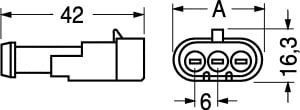 CONNETTORI PORTAMASCHI AMP SERIE SUPER SEAL 1.5. Intercambiabili e interconnettibili con gli attuali componenti e con gli apparecchi già in uso nel settore automobilistico (sensori, controllo temperatura acqua, ecc.). Resistenti all'immersione statica e dinamica in accordo alla norme IEC 529 e DIN 40050 IP 67 Resistenti a ozono, idrocarburi aromatici, sali, liquido freni, liquido anticongelante ecc. Predisposti per eventuale montaggio su pannello e/o su staffa. BLOCCH.:poliammide 6,6. caricato vetro approvato UL. AGGANCIO SECONDARIO:poliammide 6,6 caricato vetro approvato UL. GUARN.:gomma siliconica. TEMP.:-40°C÷+125°C. RESIST. ISOL.:200 MOHM. CONTATTI:serie 98/16298. CONNETTORI:98/16195. ESTRATTORE:98/46408. TAPPO CAVITA’:98/16341. CAPPUCCI:serie 98/16245. N.Poli: 5.