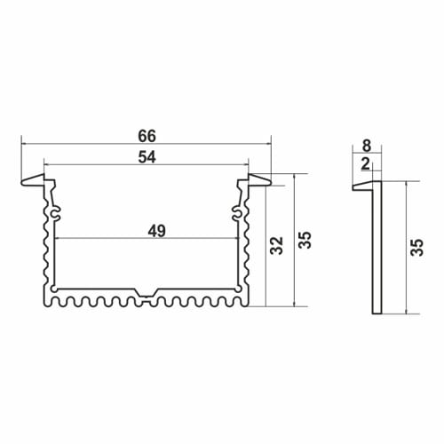 Profilo in alluminio anodizzato di colore bianco per Proline 6635. IP44. Classe III. Dimensione: 1000x66x35mm.