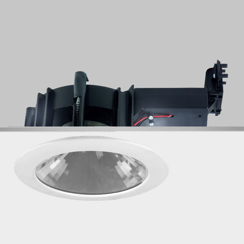 RA 20 Dixit LED 51W 4000K - Incasso fisso per luce diffusa, progettato per LED COB di ultima generazione, facilmente installabile in controsoffitti da 1 a 30 mm, anche a doghe. Driver da ordinare separatamente, la potenza dell'apparecchio varia a secondadel driver scelto. Grado di protezione IP44. LED 51W 5656lm 4000K - 100°. Colore: Bianco mat.