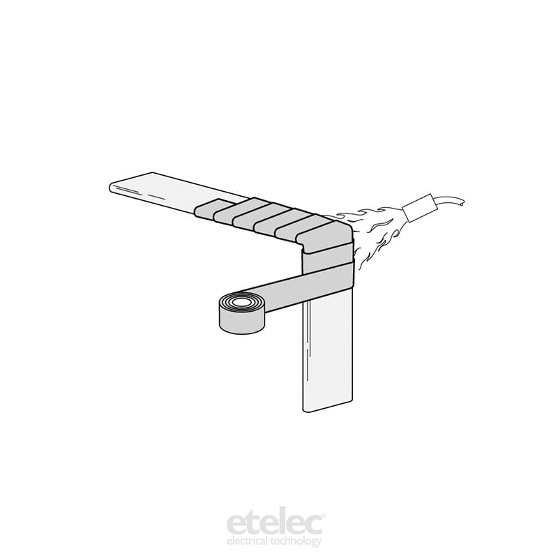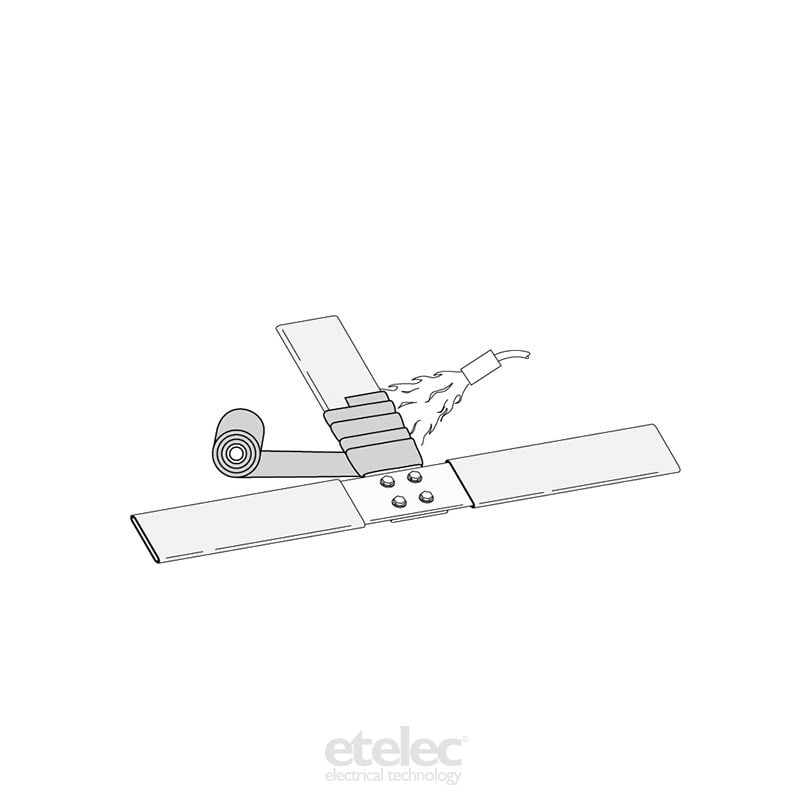 Nastro termorestringente per isolamento sbarre e connessioni in rame o alluminio di forma complessa di Media Tensione. Fornito in bobina e adesivo termofusibile su di un lato. Installazione mediante fiamma con sormonto di 2/3 della larghezza