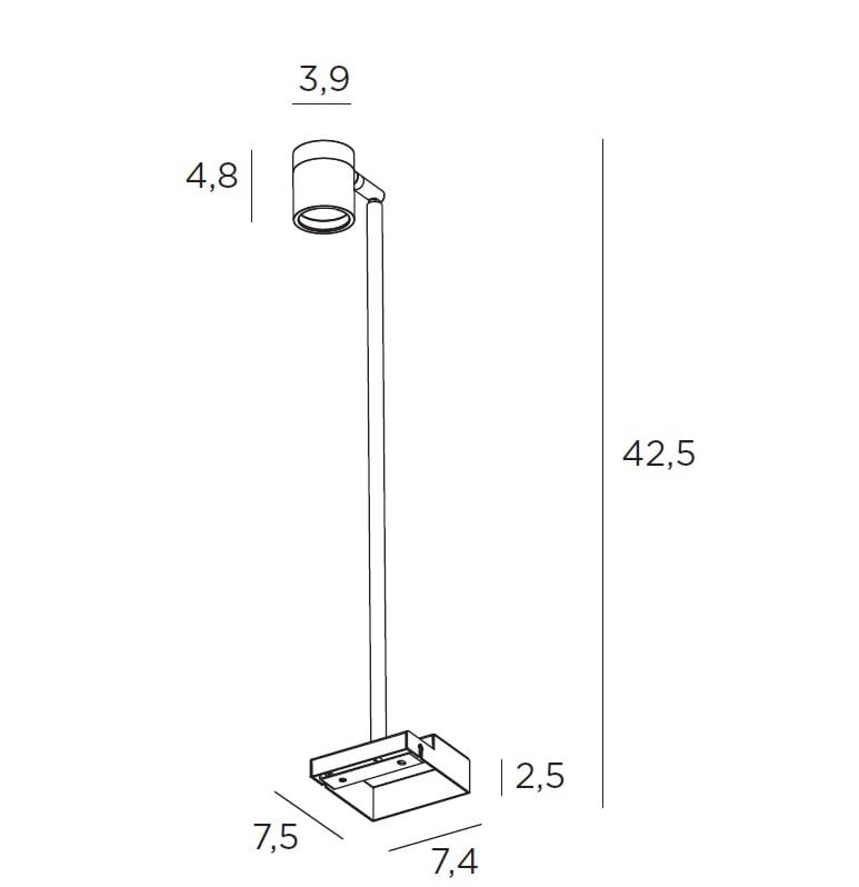 Proiettore a base con 1 spot LED orientabili. Corpo in pressofusione di alluminio verniciato nero opaco. Ogni spot deveessere completato con la relativa ottica disponibile in vari fasci e comprensiva di anello colorato. Orientabilità dei gruppi ottici di +/- 100° sul piano verticale e di 350° su quello orizzontale. Spot singolo disponibile anche in versione con asta lunga per garantire la massima flessibilità applicativa. Sorgente Luminosa: LED 9W 1200Lm 3000K. Peso Apparecchio: 0.3140 kg.