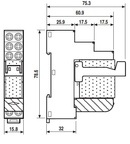 Interfaccia modulare a relè. (A): 8 A. N°contatti: 2 Configurazione contatti: CO Materiale contatti: AgNi Collegamento elettrico: raccordo a vite Alimentazione: DC Volt DC: 125 V. polarizzato monostabile Grado di protezione: IP20 Optional: LED verde+diodo.