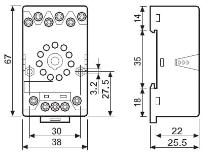 Zoccolo con morsetti a bussola. Montaggio: barra cieca 35 mm (A): 10 Grado di protezione: IP 20 Accessori: Moduli di segnalazione e protezione EMC;ponticello metallico