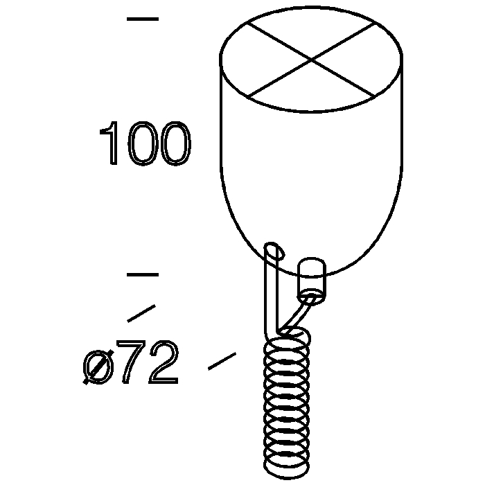 Cavetto in acciaio (l=1,5m), dispositivo per regolazione millimetrica e cavo di alimentazione (max 2000W).Carico max: kg 20. Nero