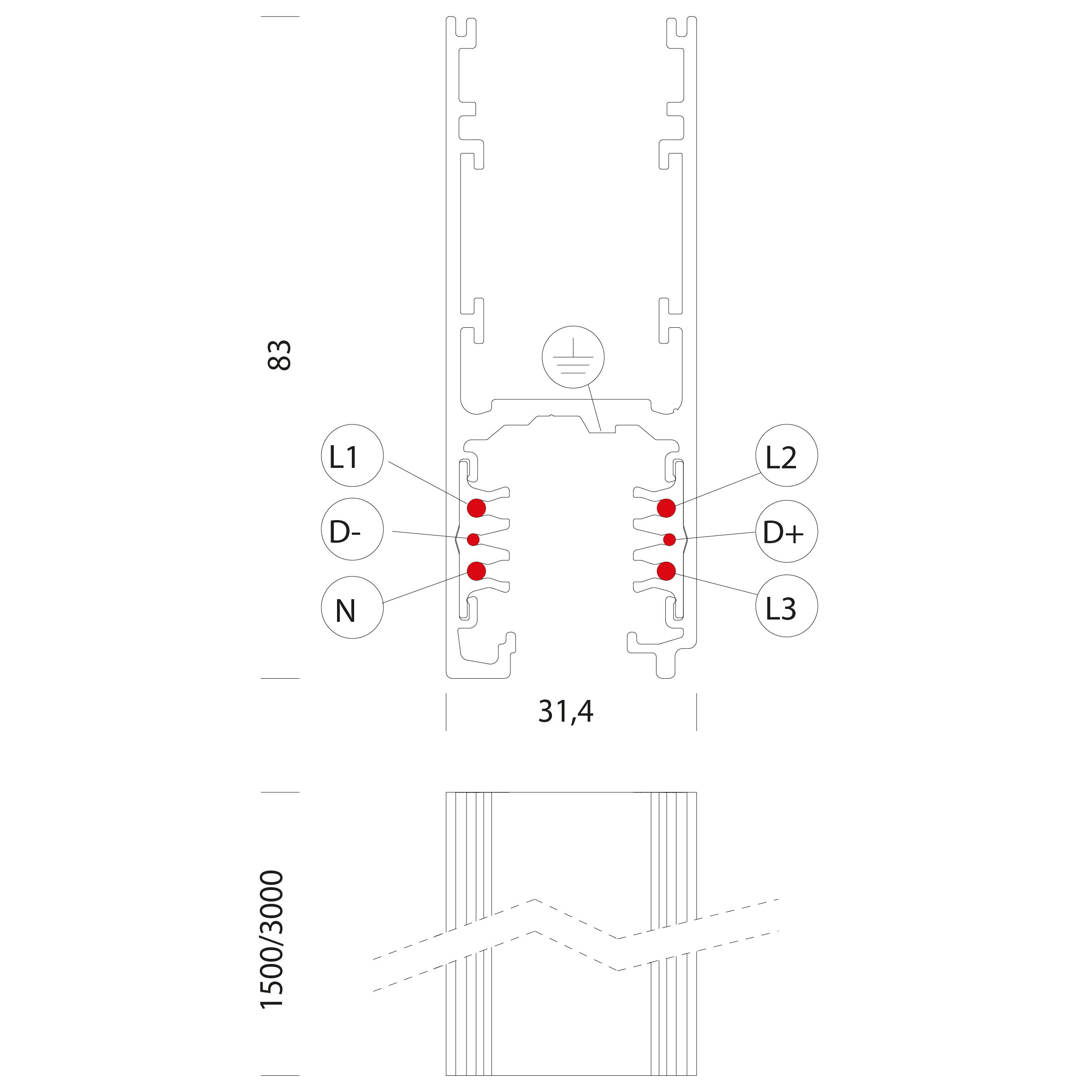 Omnitrack H - Dimm - 6 conduttori - Omnitrack H 6 conduttori: nuovo binario ad “H” che permette l’utilizzo, nella parte inferiore, di un’illuminazione diretta tramite proiettori, mentre nella sede superiore di creare luce indiretta tramite l’inserimento di strip LED o moduli LED di vario tipo. Bianco. 4,74Kg.