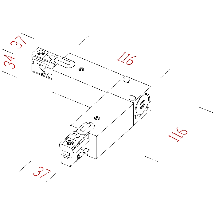 Elemento già assemblato, di immediato utilizzo. Consente la connessione elettrica “esterna” e meccanica. per la giunzione a “L”. Corredato di tre tappi di chiusura e di cavo elettrico. Possibilità di entrata di alimentazione di fianco e dal retro.
