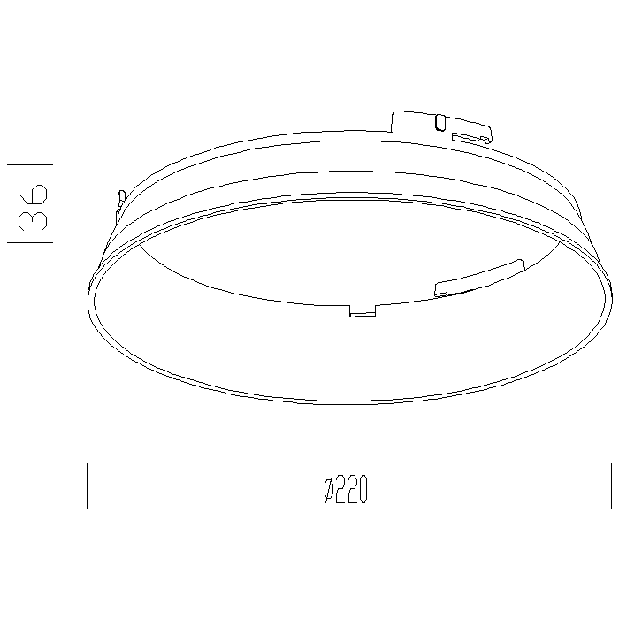 Bassa luminanza "dark light"anello di 65° (EN 12464). In policarbonato metallizzato con prismatico sfaccettature di una maggiore luce controllare.